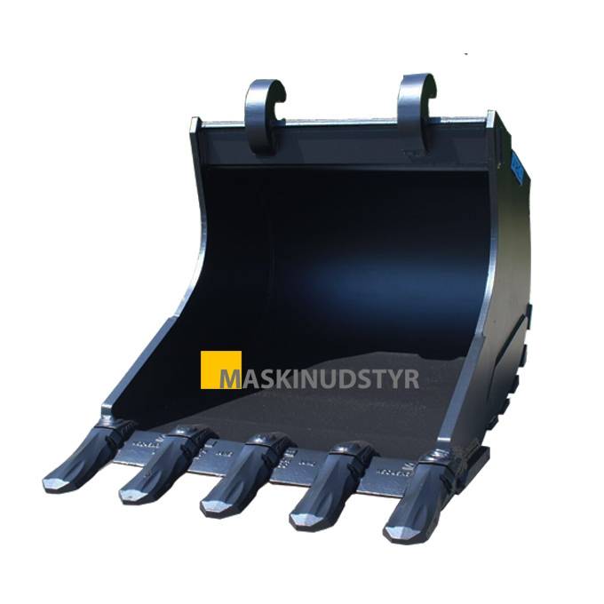 1200mm Graveskovl med hurtigskifte og med tænder, skovlen er fremstillet i HARDOX 450 højstyrkestål, slidribber og skærstål i 500Hb. Extrem slidstærk skovl til alle typer opgaver, skovlen fås i flere forskellige udformninger.