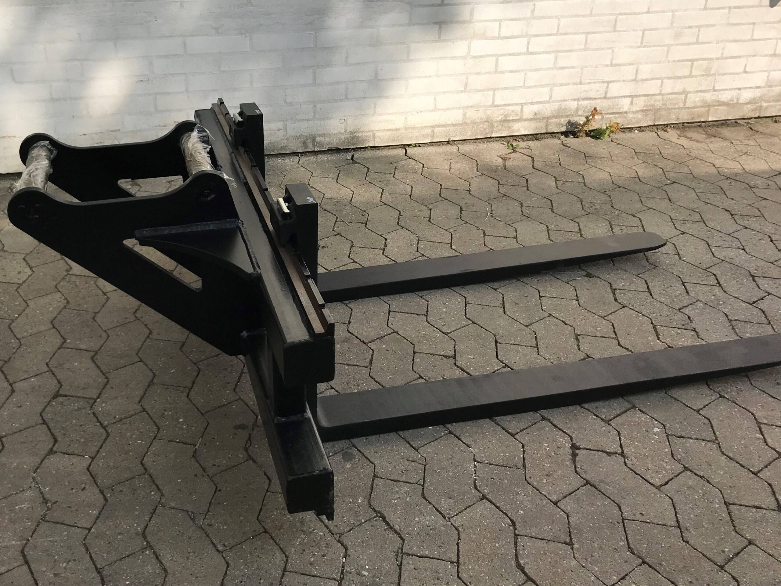 Vores mekaniske pallegafler til gravemaskine er en solid, enkel, gennemprøvet konstruktion i høj kvalitet, der holder i rigtig mange år. Afstanden mellem gaflerne justeres nemt og manuelt ved at frigøre låsen (fjederbelastet klak) og rykke gaflen i den ønskede position.