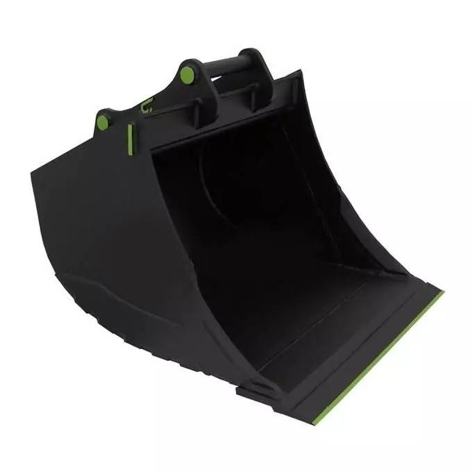 900mm Graveskovl med hurtigskifte uden tænder, skovlen er fremstillet i S355 stål med Forskær og slidribber i Hardox 450. God åben skovl som let tømmes selv af vådt og klistret materiale.